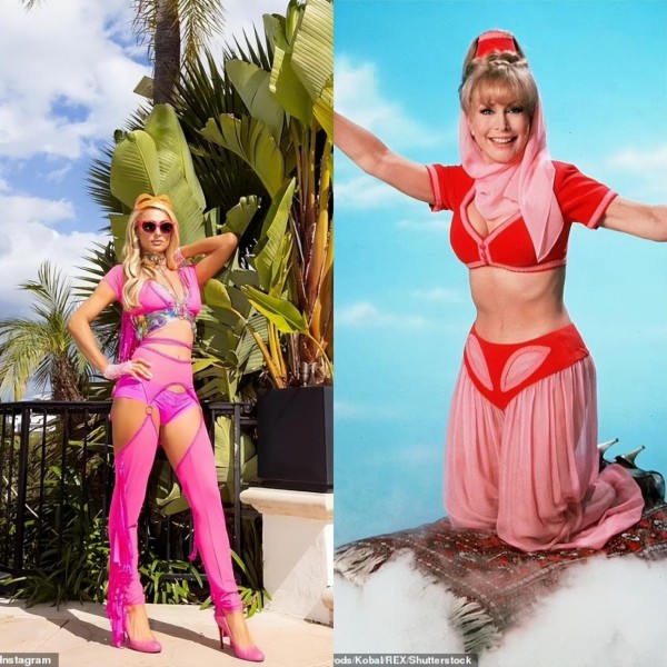 希尔顿晒穿粉色镂空套装照片,宛如人间芭比,婚后幸福甜蜜