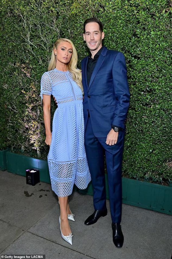 前几天,她和新婚丈夫一起参加了洛杉矶艺术博物馆举办的收藏家聚会。希尔顿换上了简单的浅蓝色长裙,优雅的打扮。裙子上的镂空圆圈,在减龄的同时,又不失富婆应有的高级感。她被老公搂着腰,还顺势做了一个优美的曲线。作为上东区的交际花,帕丽斯很清楚什么时候该做淑女,什么时候该释放野性。