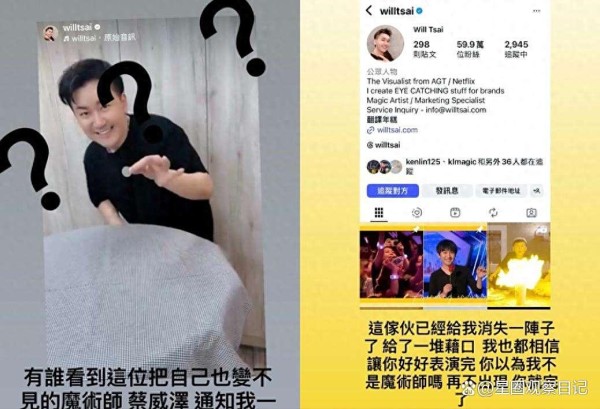 这场风波的另一位主角,是魔术师蔡威泽。他可不是普通的魔术师,2017年在美国达人秀上表演的“硬币穿越魔术”一度惊艳全球。