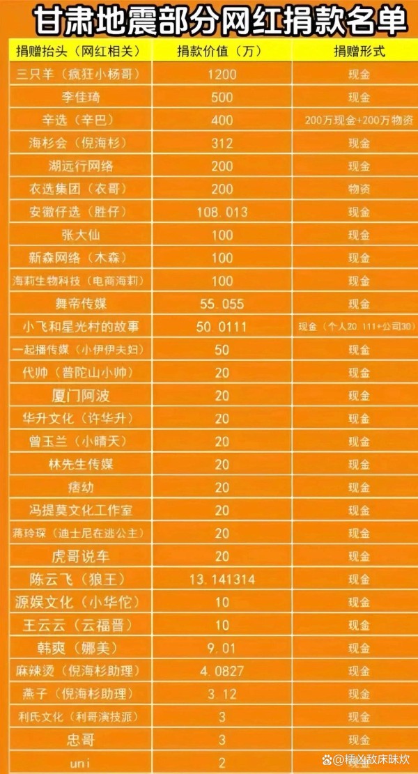 众星驰援甘肃灾区,黄晓明赵丽颖肖战捐赠物资,韩红捐赠200万