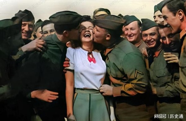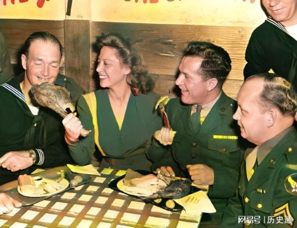 二战期间,美国的好莱坞食堂里明星们伺候士兵们吃饭。这些普通士兵如果不当兵可能一辈子只能从电视上见到这些好莱坞明星。