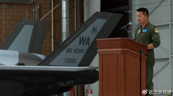 2022年的时候,美军公开了第65“入侵者”飞行中队的组建仪式,仪式中赫然有一架F-35,采用了与歼-20非常类似的涂装。