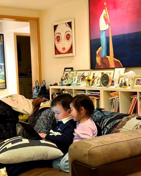 在艺术熏陶上,家中摆放着抽象派艺术作品,孩子甚至可以随意用口红涂画,自由发挥创作力。