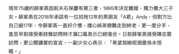 再度牵手!73岁薛家燕与小17岁男友旧情复燃,决不再婚、生育