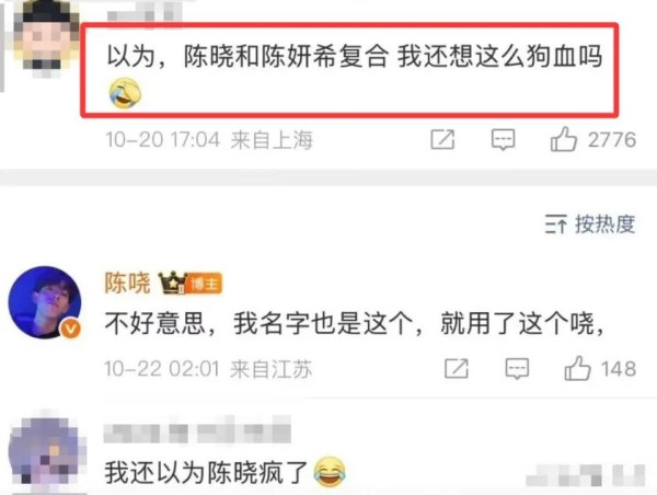 不过这个消息是假的,这个网友的账号ID叫“陈哓”,两人名字恰巧相似,就差那么一横,恰好这个博主还是个红V,有人截图发了出去,故意带上陈晓的话题,导致不少人误解了,这事就是个彻头彻尾的乌龙。