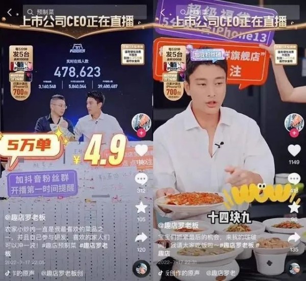 7月17日,罗敏邀来贾乃亮、傅首尔一起吃播带货,凭借“1分钱抢购酸菜鱼,1500台iPhone13免费送”,让“趣店罗老板”的抖音直播间火出圈。当日,直播从早上6点半开始,累计时长超19个小时。