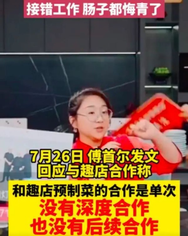 26日中午,傅首尔发文回应与趣店合作称:和趣店预制菜的合作是单次,没有深度合作,也没有后续合作。”对品牌前身确实缺乏了解,没有做好企业及市场背调。接错了一份工作,疏忽又愚蠢,满心后悔,实事求是的批评都接受,也一直在反思。