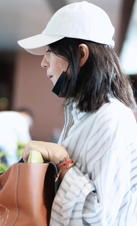 机场里的赵薇,打扮得十分低调休闲。她头戴白色棒球帽,身上穿了件条纹衬衫,口罩遮住了大半张脸,只露出一双依旧水灵的大眼睛。虽然已经 49 岁,但从露出的眼部状态来看,依旧能看出昔日 “小燕子” 的灵动影子。许久未露面的她,身材保持得不错,并没有明显发福的迹象,只是在办理手续时,收起笑容的瞬间,眼神里透着一丝疲惫,肤色也略显憔悴,大概是这些年经历了不少事情,难免留下岁月的痕迹。