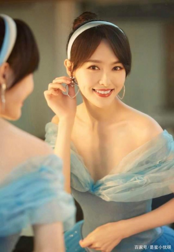第一张图是唐嫣近期参加快乐大本营的造型,穿着蓝色公主裙,盘着丸子头,戴着发带和爱心耳环,笑容甜美。唐嫣满脸都是胶原蛋白,非常的美。