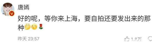 随后唐嫣也很快在刘亦菲的祝福下回复,"好的呢,等你来上海",并且唐嫣还打趣的说,"要拍自拍还要发出来的那种",两人的交流就像平常闺蜜一般,朴素自然。
