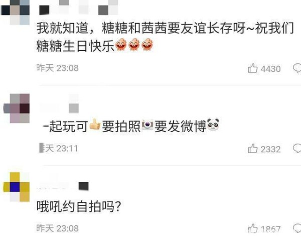 网友也纷纷都送上了真诚的祝福,有的祝唐嫣生日快乐,最多的是祝福"糖糖和茜茜要友谊长存",还有人羡慕两人的神仙友谊,表示"仙女都是一起玩的",还有网友听着要约自拍的消息,也就开始催合照,顺便期待发问"什么时候两人能再合作?"