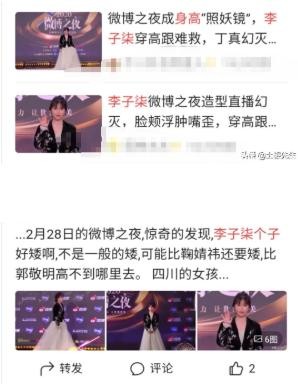 网暴李子柒者说她的身高太矮,穿了高跟鞋还那么矮,跟郭敬明的高度差不多,甚至有人说她脸肿嘴歪。这样的形象跟短视频里面的差别太多。