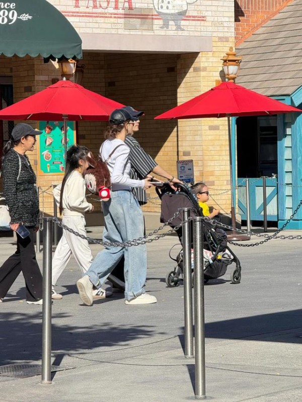 在环球影城的游玩过程中,戚薇和李承铉一路热聊不停。他们时而停下脚步,一起看着孩子们玩耍,脸上洋溢着幸福的笑容;时而又轻声交流着什么,眼神中满是对彼此的理解与支持。李承铉推着儿子,戚薇则紧紧跟在旁边,时不时地弯下腰,逗逗儿子,或者和 lucky 说上几句贴心话。一家人的互动充满了温馨与爱意,周围的游客们纷纷投来羡慕的目光。