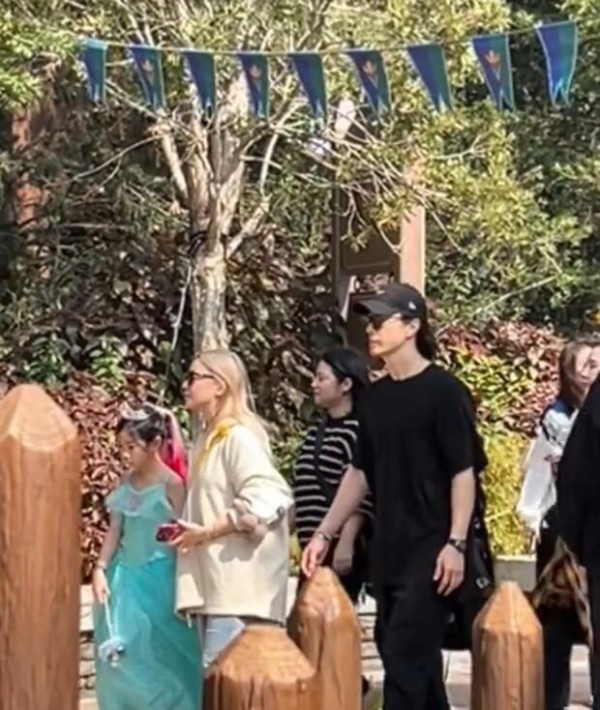 其实去年1月份的时候,就有网友在香港迪士尼乐园偶遇过他们一家四口,不过当时并未拍到二胎弟弟的正脸。