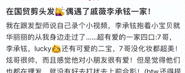 9月19号,戚薇带着老公李承铉和俩娃儿一起去理发,被人看见啦。