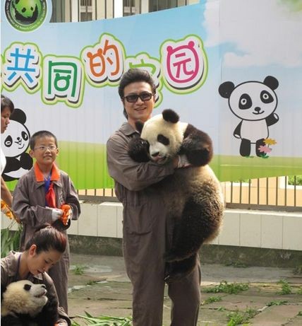 明星和熊猫同框:金庸給熊猫输内力,网友:熊猫将成为功夫熊猫!