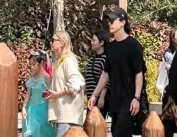 在洛杉矶环球影城,这一家四口逛街的画面,被媒体捕捉到了。