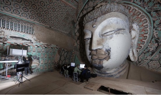 莫高窟第130窟-壁画数字化采集工作照 熊业腾拍摄(敦煌研究院供图)