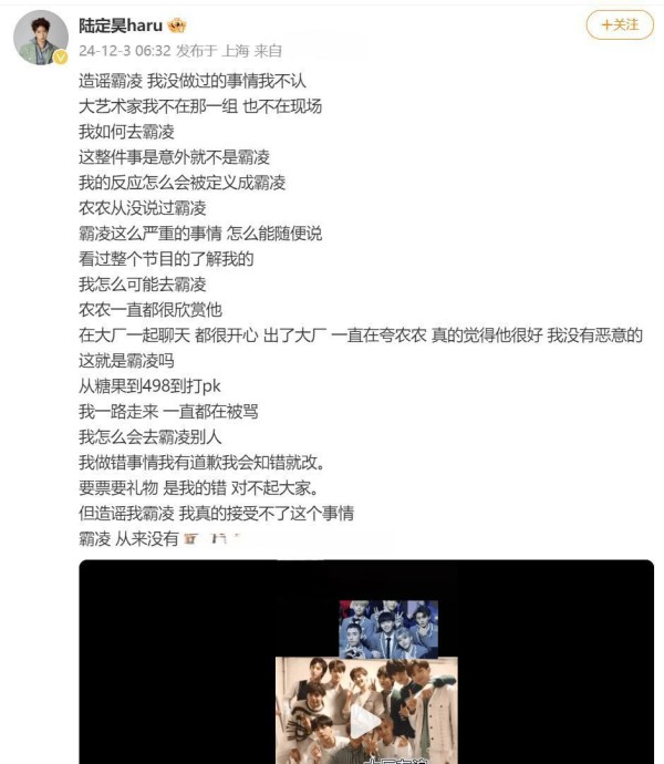 陆定昊力挺陈立农 否认霸凌传闻:一直很欣赏他#陆定昊道歉信#陆定昊道歉信对于霸凌陈立农事件:娱乐圈友情与公众误解的交织