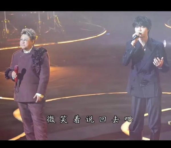 两人合作的是一首重新编曲的《飞云之下》。韩红的嗓音厚重辽阔,像大山般沉稳;陈立农的声线清澈透亮,如溪流般灵动。当“我看着海峡的尽头,有云在降落”的歌词响起,两代歌手的声线交织在一起,台下观众纷纷打开手机闪光灯,全场变成一片星海。有粉丝在台下喊:“农农的高音居然能接住韩红老师!太惊喜了!”