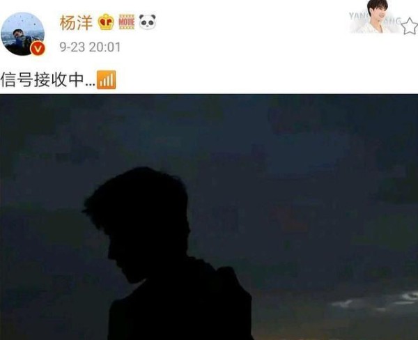 再看看杨洋微博发布的自拍照,也是在夜幕降临的时候拍摄的,也是露出了剪影。
