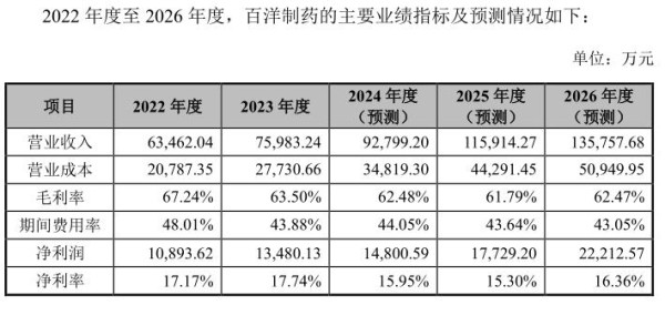 需要注意的是,百洋制药2024年至2026年的预测净利润分别为1.48亿元、1.77亿元、2.22亿元,均高于业绩承诺的标准。
