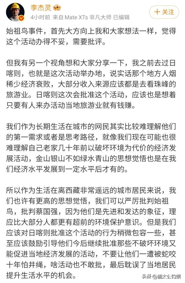 有一位粉丝量接近400万的博主李杰灵发表了自己的看法,我觉得还是有点道理的。