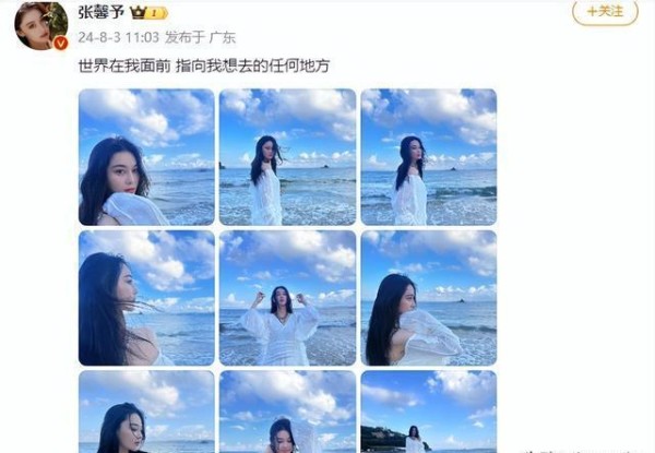 当时,一位热心的网友在海边偶遇了正在度假的张馨予和何捷。何捷贴心地帮妻子张馨予拍摄了几张照片,随后张馨予在微博上晒出了这些照片,并配上了温馨的文字:"世界在我面前,指向我想去的任何地方。"这条微博引发了众多粉丝的热议,大家纷纷表示这对夫妻的恩爱让人羡慕。