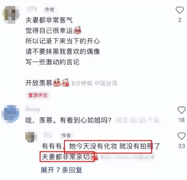该网友透露称林心如也有在场,因为她没有化妆就没有合照,对此,网友十分理解,再次强调称不管是霍建华还是林心如都非常亲切、待人非常地客气,能够偶遇到他们十分幸运,给出了夫妻俩很高地评价。