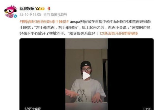 10月9日中秋假期,有网友把一段韩女团成员柳智敏在直播里说的家庭日常截了图和片段发上了社交平台:她说回家会和父母同床睡,左手牵爸爸、右手牵妈妈,早上父亲还温柔解释“睡觉时不小心松开了手”。