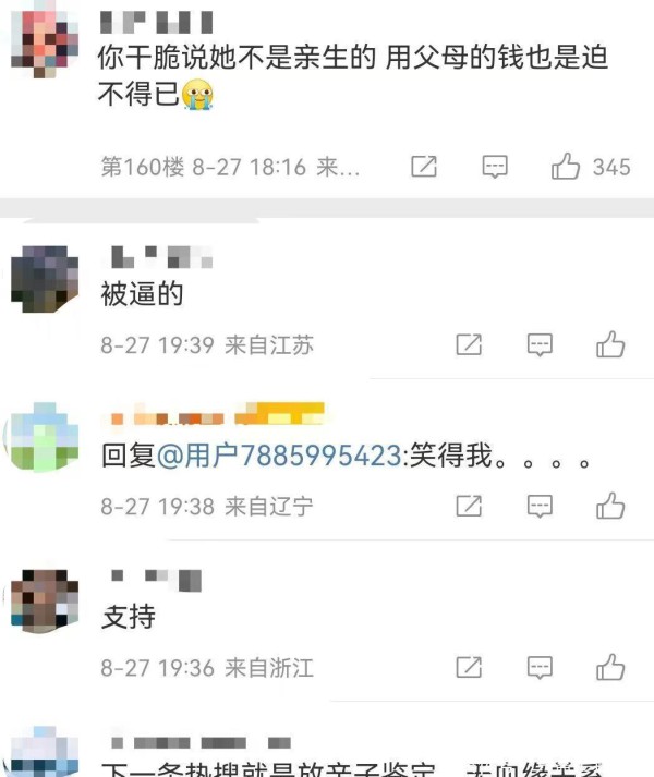 还有一批网友,说她用父亲的钱是被逼的。