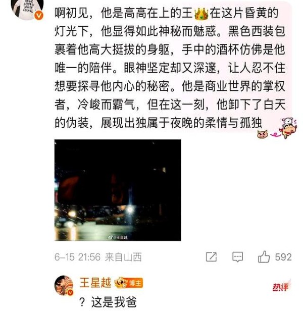 王星越在父亲节那天发了张老爸的照片,本来是想表达下孝心,谁知道评论区直接翻车了。