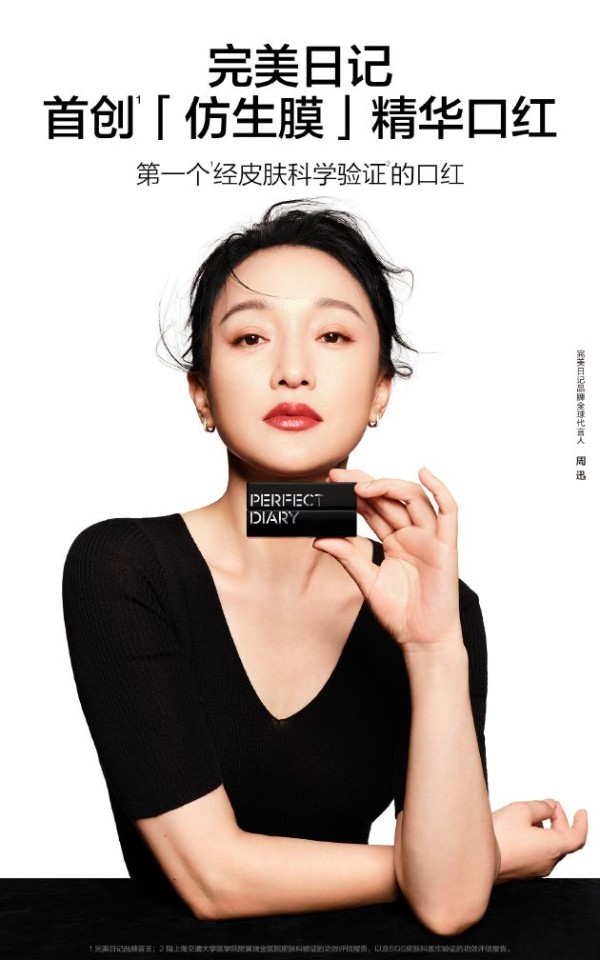以完美日记首创‘仿生膜’精华口红为例,该产品在兼顾显色度和成膜效率的同时,可以在春夏季节为唇部带来持久的滋养与呵护。完美日记首创唇部仿生膜Biolip™技术,为无法正常分泌油脂的唇部肌肤构建一层仿生皮脂膜,从而保护唇部肌肤屏障功能。在实现均匀锁色、上妆显色卓越效果的基础上,该技术可以实现快速成膜,满足‘早8人’争分夺秒的上妆手速;连续使用两周后,更能有效淡化唇纹,增加皮肤角质层水分含量,显著降低唇部在春夏季节容易产生的干燥、粗糙现象,提升唇部肌肤状态。