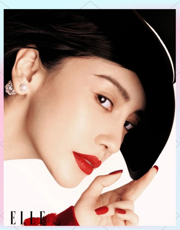 在妆容上,杨颖选择了以净透为基调的底妆,同时运用深色系彩妆精心勾勒出眉眼轮廓,使得双眼更加立体深邃。搭配上一抹大红的唇色,瞬间抓住了众人的目光,令人难以移开视线。在杨颖的几套造型中,都巧妙地运用了红与黑这两种高对比度的色彩进行搭配。这种风格不仅在封面拍摄中使用,在日常活动中也偏爱明艳的造型。她的妆容似乎生来就是为了吸引注意力而存在。