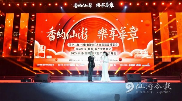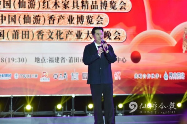 晚上19点30分,第十二届中国(仙游)红木家具精品博览会、首届中国(仙游)香产业博览会、2024中国(莆田)香文化产业大会晚会在县体育中心唱响。