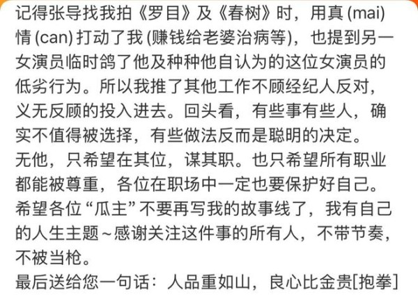 作为《春树》的女一号,却不能与剧组共进退,换谁都会生气。