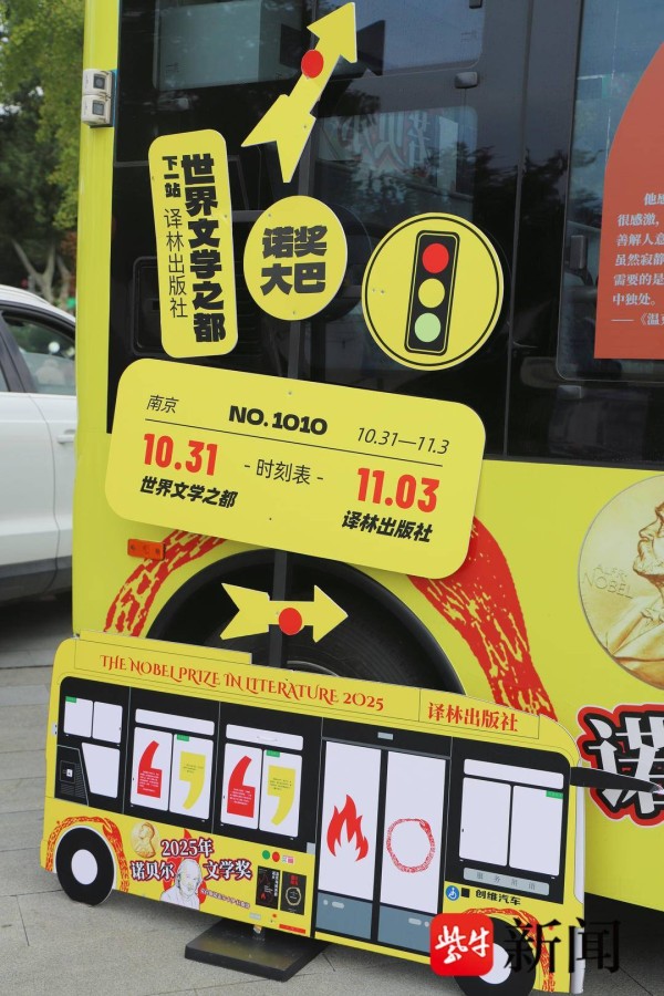 当公交车厢变身移动书房,当车窗贴满诺奖名句,南京用最诗意的方式,让文学穿行在城市脉络中。在“2025南京文学书集”开张期间,南京公交的1路、332路主题巴士,载满文学彩蛋,成为街头最亮的星。