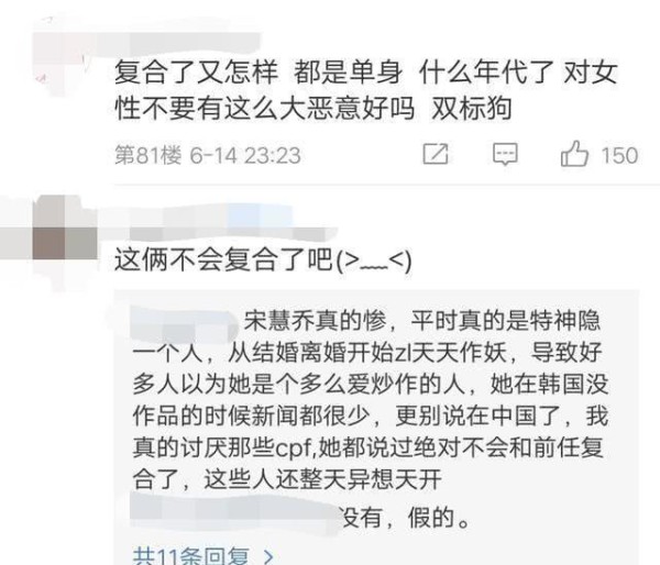 网友们也纷纷在网上发表了看法,大家觉得宋慧乔虽然结了一次婚,可是现在年代已经早不是之前那个传统年代了,如果她真的遇到了真爱,两个人又再度在一起了,粉丝们还是相当支持的。不过这也毕竟是大家的猜测,至于事情的真相如何?还是等着官方的消息吧,你怎么看呢?