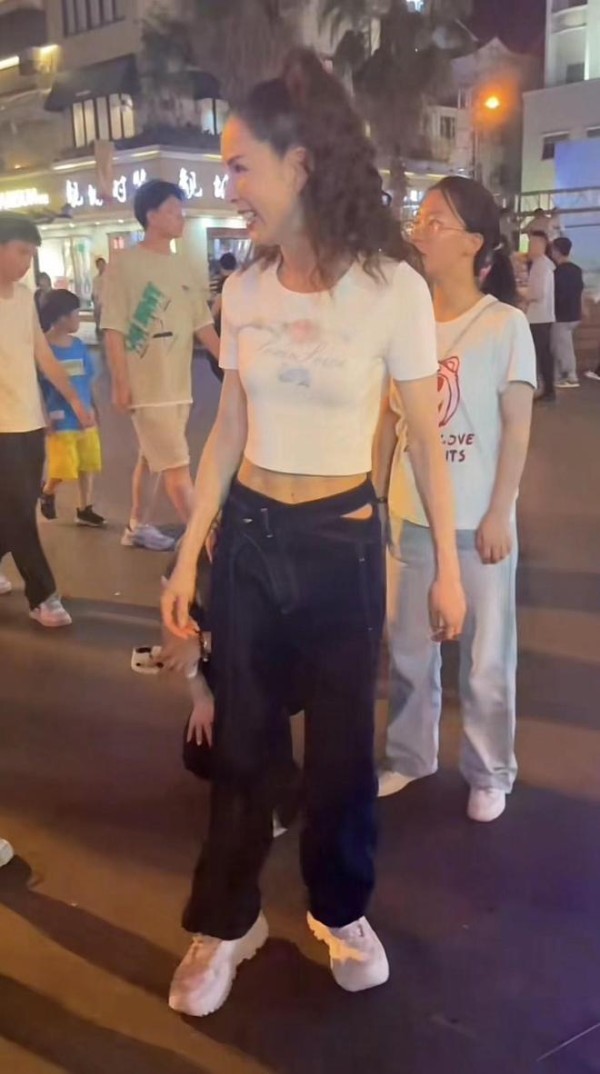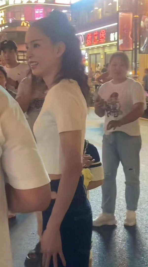 小龙女李若彤逛上海夜市,皮肤紧致好似大学生,状态非常好!