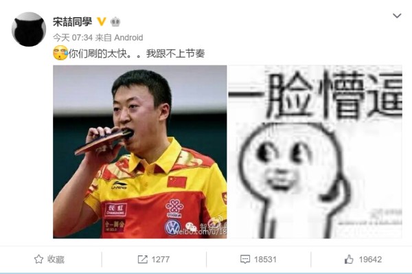 王宝强离婚乒乓球手宋喆躺枪 2小时收数万评论