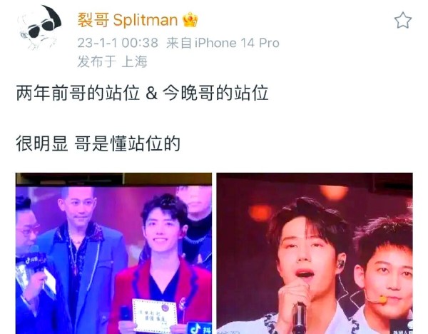 在最近的跨年活动中,苏醒与王一博罕见同框,这一场景迅速成为了网友们热议的焦点。苏醒不仅在微博上分享了与王一博的跨年合影,还配以先前与肖战同框的照片,并自嘲道“哥是懂站位的”。这种调侃式的自我宣传,不仅展现了苏醒的幽默与机智,更凸显了他对热度的渴望。