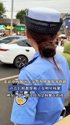抖音上有人喊:“这比李彩桦还好看!”有人从通州打车过来,蹲了半小时,就为了拍一张“真人版”。还有人说:“我想打电话去交警大队问路,就为了听她说一句‘别着急’。”