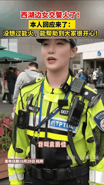 西湖高颜值女交警火了,本人回应,戴蓝牙耳机是为接收指挥!
