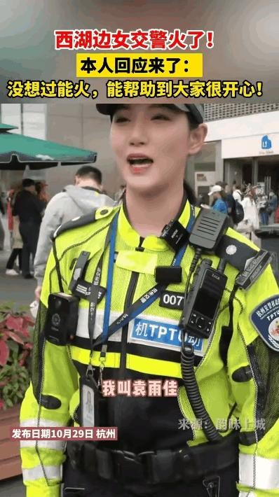西湖高颜值女交警火了,本人回应,戴蓝牙耳机是为接受指挥!