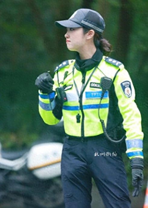杭州一执勤女骑警神似贾静雯!