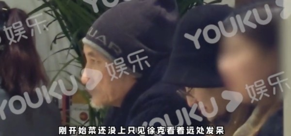 视频中已经70岁的徐克胡子花白,身穿黑色的棉服,头上戴着一顶灰黑色毛线帽,包裹得很严实。