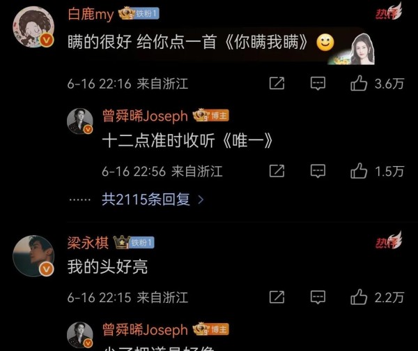 白鹿见到他俩的反应才叫绝 —— 直接发微博配了串震惊表情包:“真的被吓了两跳!!!” 那语气隔着屏幕都能感觉到她原地懵圈的样子。曾舜晞回了句 “说来就来”,酷盖人设稳稳拿捏;梁永棋更绝,在评论区来句 “我的头好亮”,直接把探班现场秒变喜剧片场。这三人一来一回的互动比电视剧还抓马,网友集体化身尖叫鸡:“这是什么神仙友谊?我宣布这波 CP 我锁死了!”