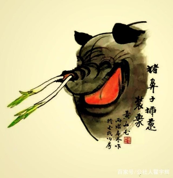 《猪鼻子插葱装象》,黄永玉画猪作品欣赏。在画坛上,有猪不入画之俗。但看看老顽童黄永玉画猪,你会感觉别有意趣!黄永玉,1924年出于湖南省凤凰县,土家族人,擅长版画、彩墨画。中央美术学院教授,中国美术家协会常务理事、副主席、顾问。
