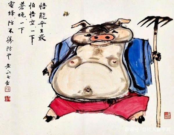 《悟能平生最怕悟空,一下苍蝇,一下蜜蜂,防不胜防也》,老顽童黄永玉画猪作品欣赏。