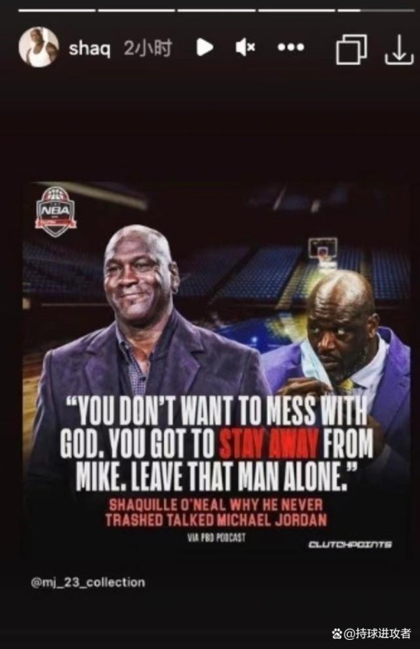北京时间9月19日,前湖人名宿奥尼尔转发了自己做客《PBD》节目时的采访,在采访中奥尼尔被问到了关于乔丹的问题,奥尼尔对乔丹表现的极为尊重。当主持人问到奥尼尔为什么从不对乔丹喷垃圾话的时候,奥尼尔表示:“你不会去招惹神,你需要离乔丹远一点,不要去招惹他。”